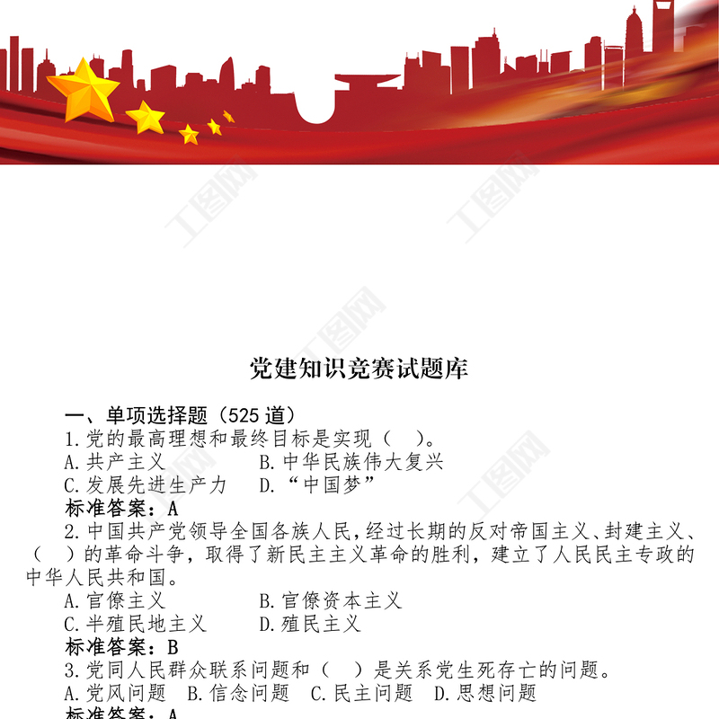 工圖網(wǎng)提供黨建工作知識競賽試題庫供會員免費(fèi)下載。更多精彩黨課PPT素材,盡在工圖網(wǎng)。