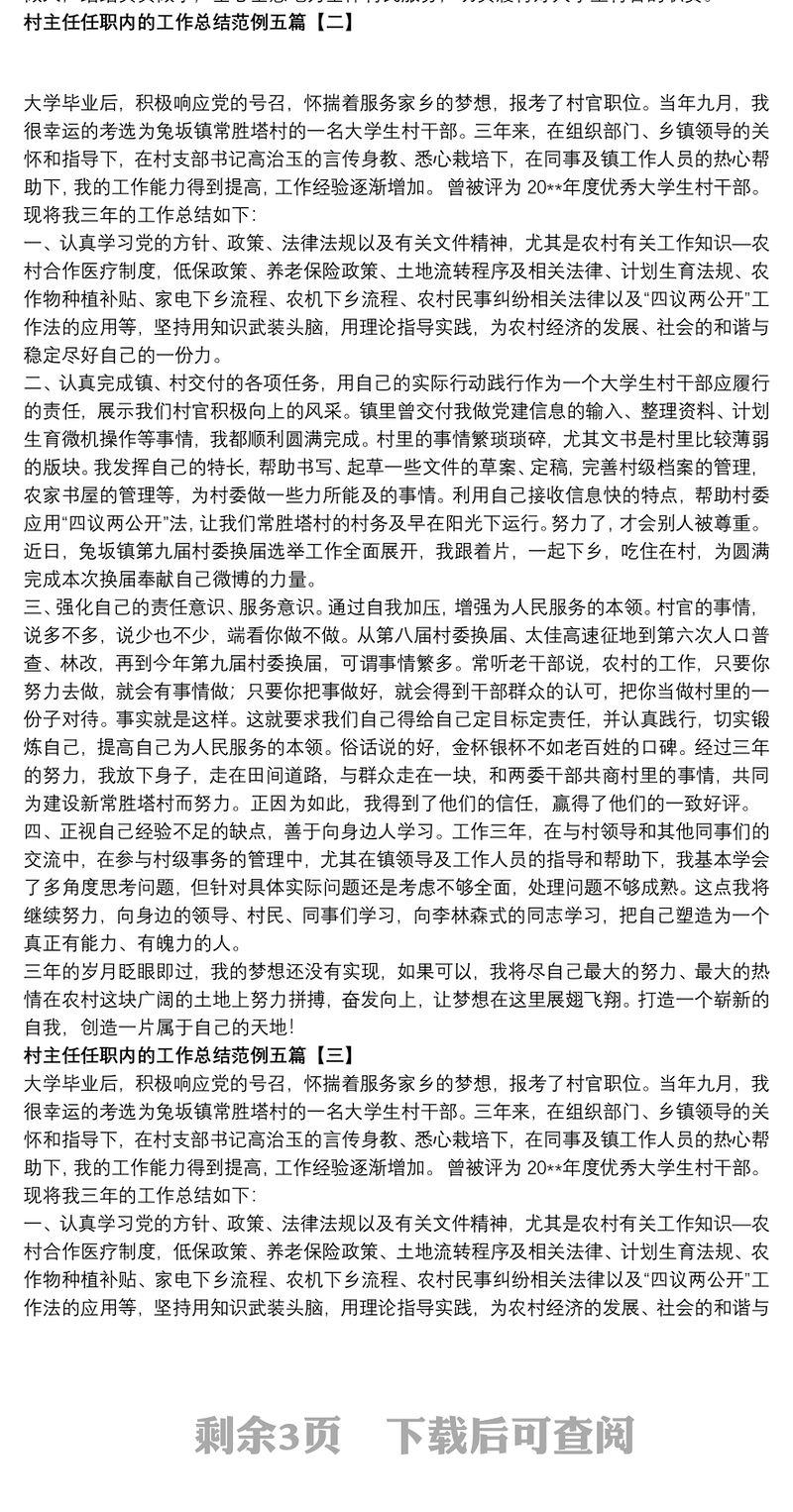 村主任任職內(nèi)的工作總結(jié)范例五篇 Array