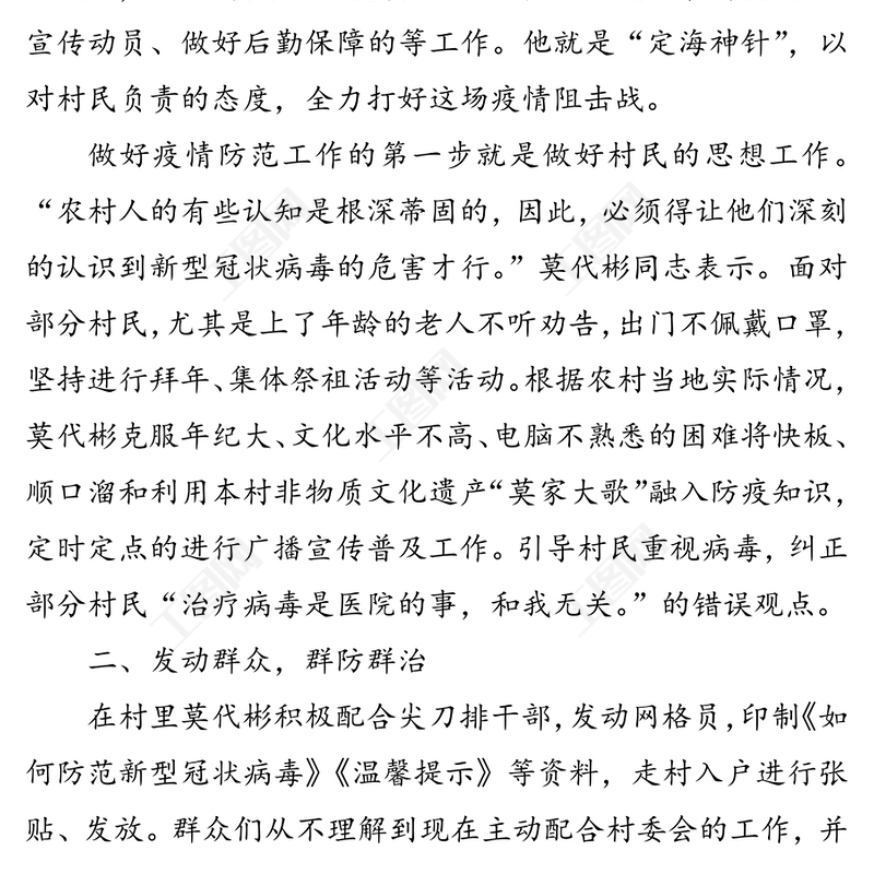 疫情就是命令,防控就是責(zé)任,——,疫情防控黨員先進(jìn)事跡之莫代彬,先進(jìn)事跡材料,先進(jìn)事跡材料,公文范例,領(lǐng)導(dǎo)述職報(bào)告,機(jī)關(guān)公文寫(xiě)作 Array