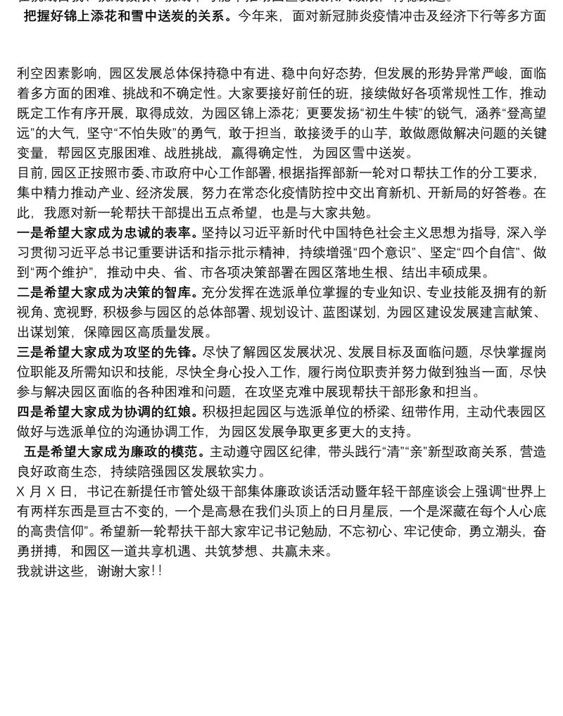 在迎接新一輪對(duì)口幫扶工作干部座談會(huì)上的講話