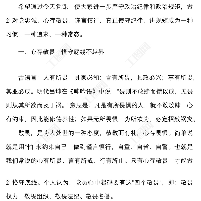 工圖網提供銀行紀委書記黨課心存敬畏行有尺規黨風廉政廉潔從業黨課講稿范文供會員免費下載。更多精彩黨課PPT素材,盡在工圖網。