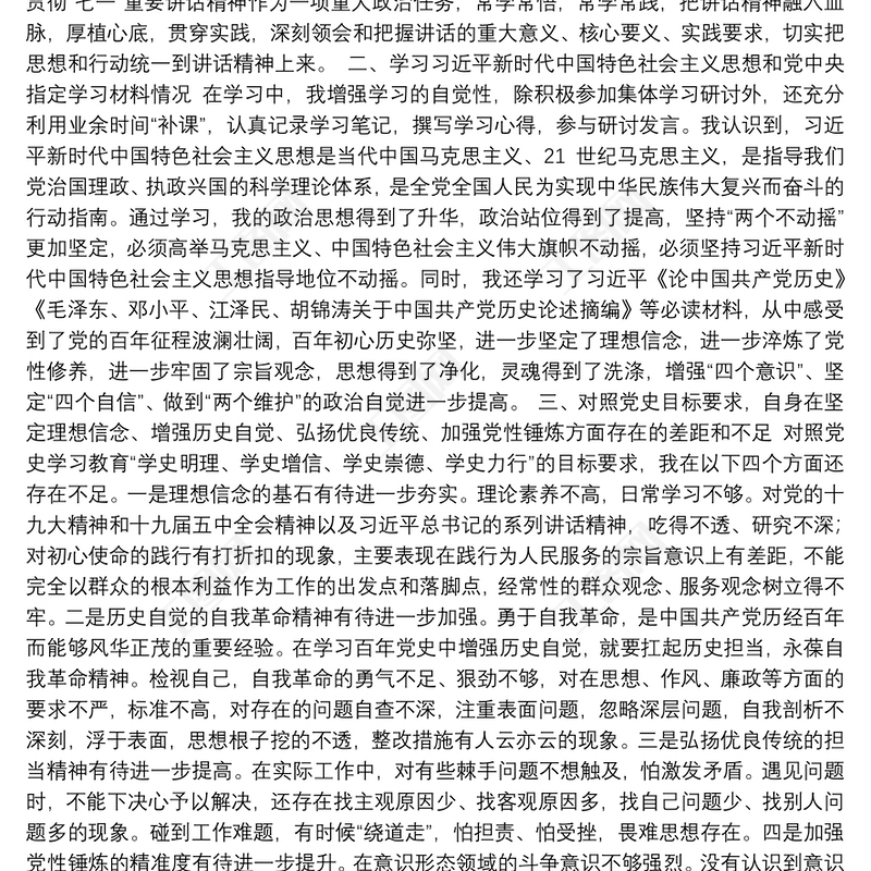 市委辦機關支部黨員干部黨史學習教育專題組織生活會“四個方面”檢視剖析材料