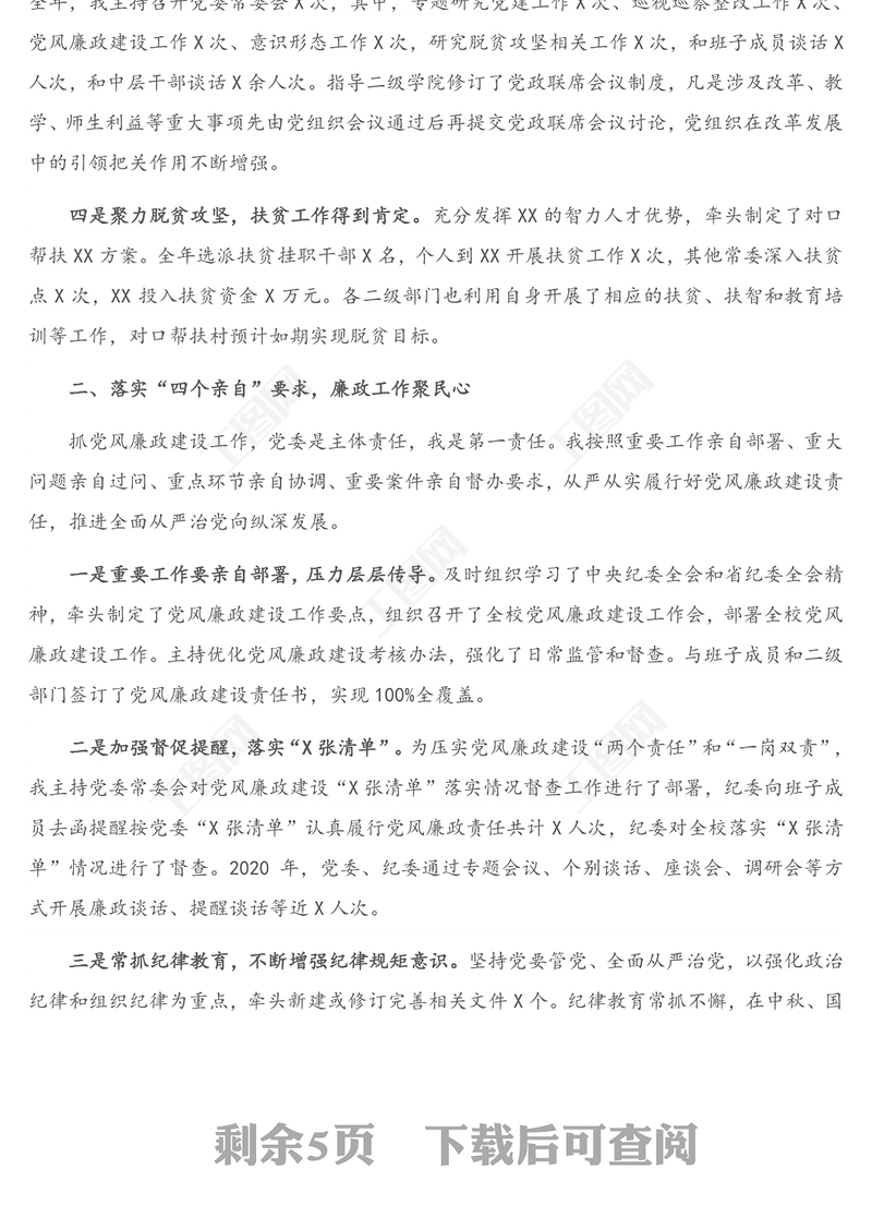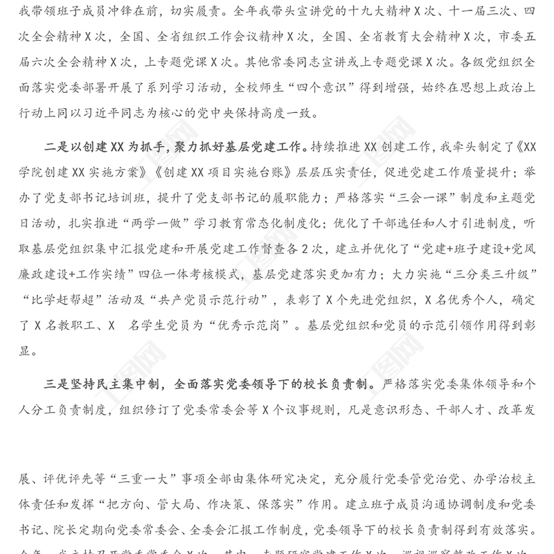 工圖網提供X高校黨委書記2020年度抓黨建工作述職報告供會員免費下載。更多精彩黨課PPT素材,盡在工圖網。
