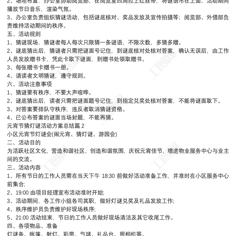 工圖網(wǎng)提供元宵節(jié)猜燈謎活動方案總結(jié)5篇供會員免費下載。更多精彩黨課PPT素材,盡在工圖網(wǎng)。