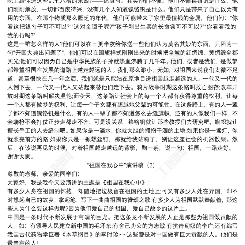 祖國在我心中國慶節主題演講稿參考范文包含