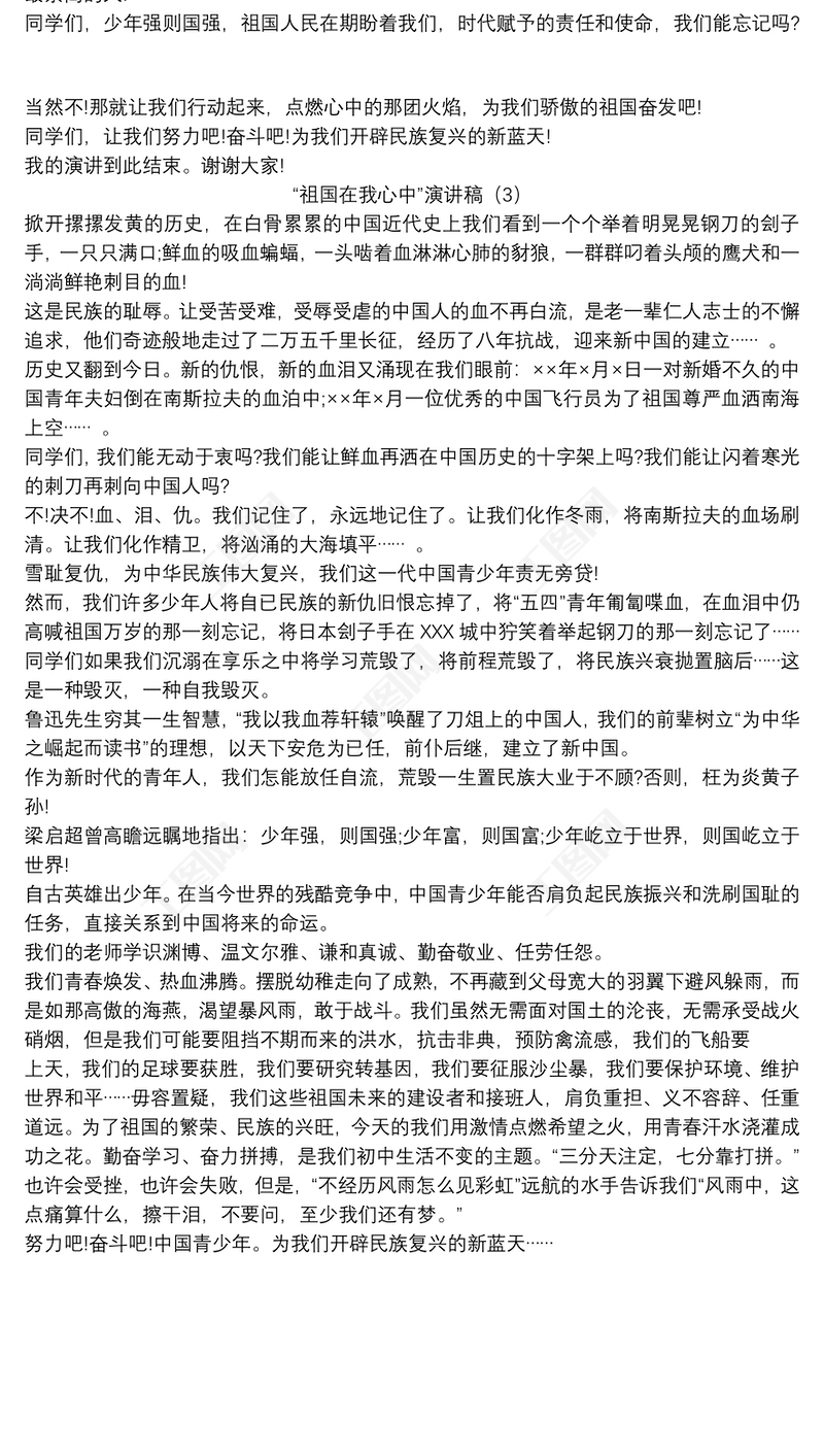 祖國在我心中征文500字包含
