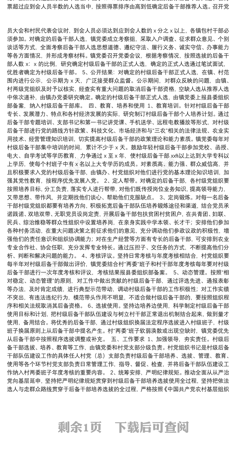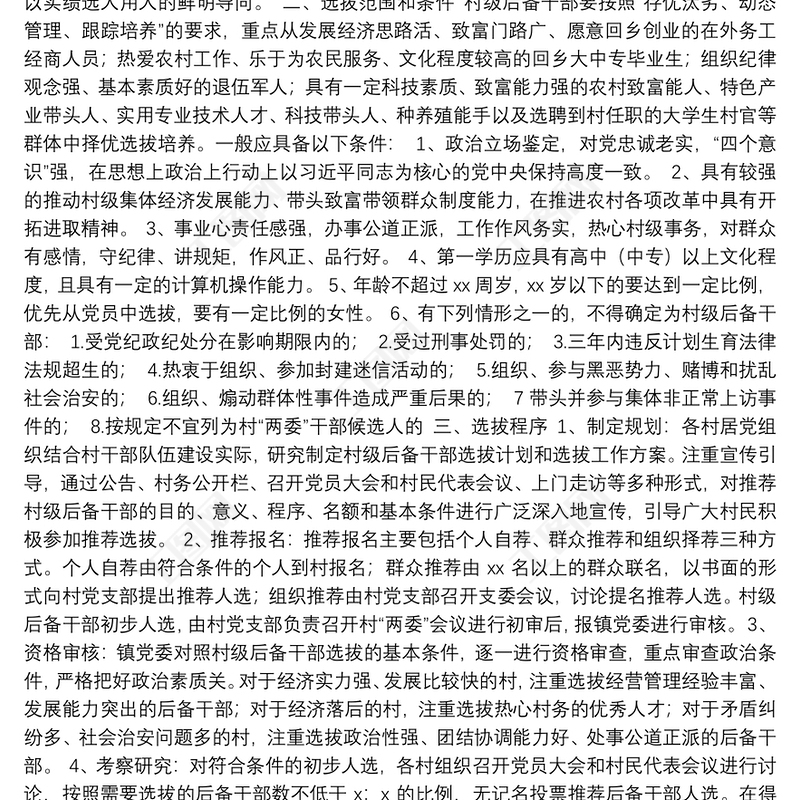 > 計(jì)劃方案 > 村級(jí)后備干部選拔培養(yǎng)和教育培訓(xùn)工作實(shí)施方案(鎮(zhèn)鄉(xiāng)、街道).DOCX 【圖片、文字、動(dòng)畫(huà)均可編輯】