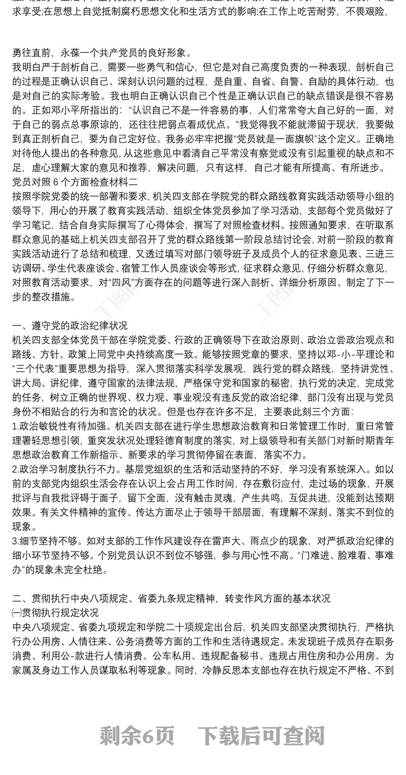 2021XXXX年民主生活會發言提綱(對照六個方面檢查材料)包含