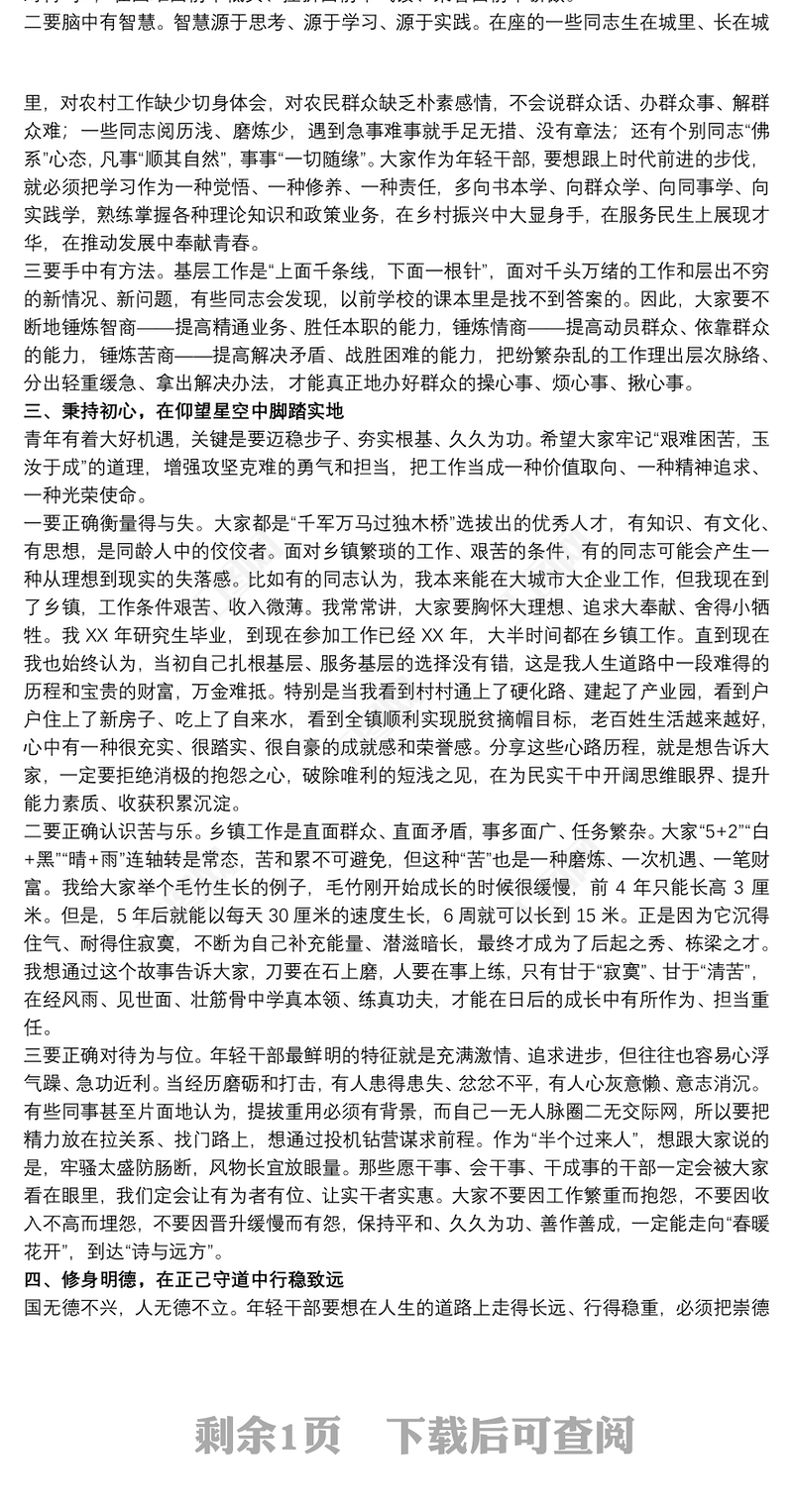 黨委書記在20xx年全鎮青年干部座談會上的講話范文 Array