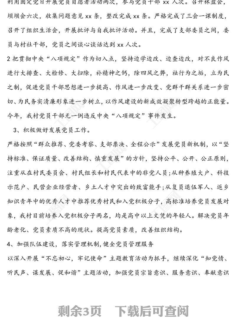 2篇村黨支部書記述職報告工作總結匯報報告包含