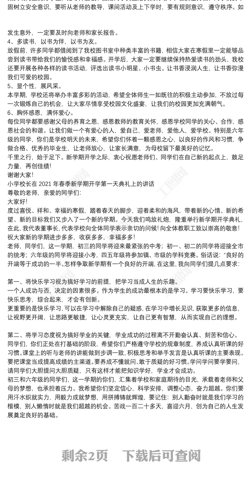 工圖網提供小學校長在2021年春季新學期開學第一天典禮上的講話供會員免費下載。更多精彩黨課PPT素材,盡在工圖網。