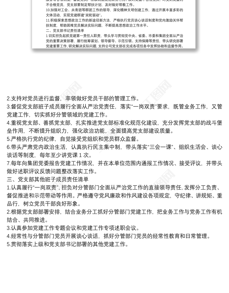 黨支部班子及班子成員黨建工作責任清單包含