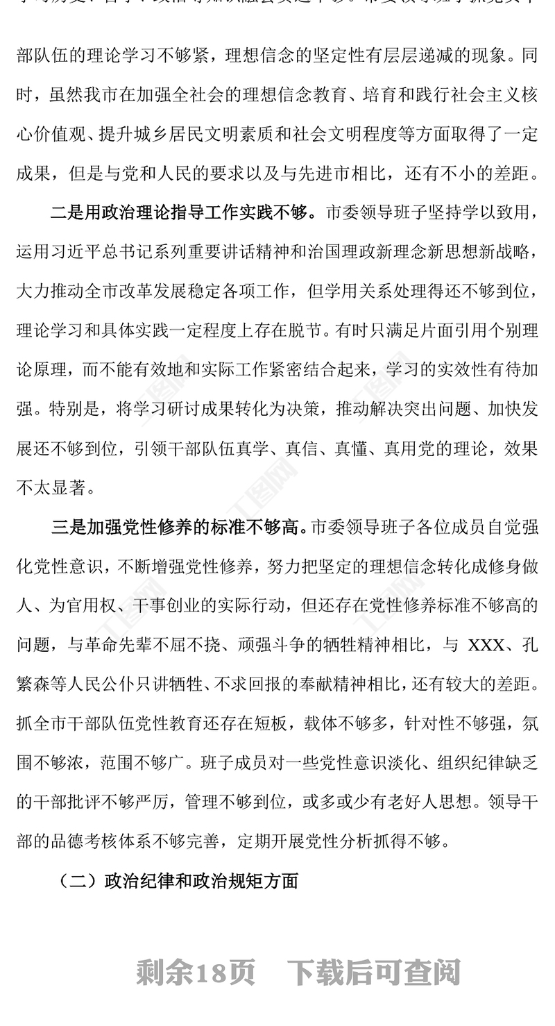 工圖網提供市委常委班子年度對照檢查材料供會員免費下載。更多精彩黨課PPT素材,盡在工圖網。