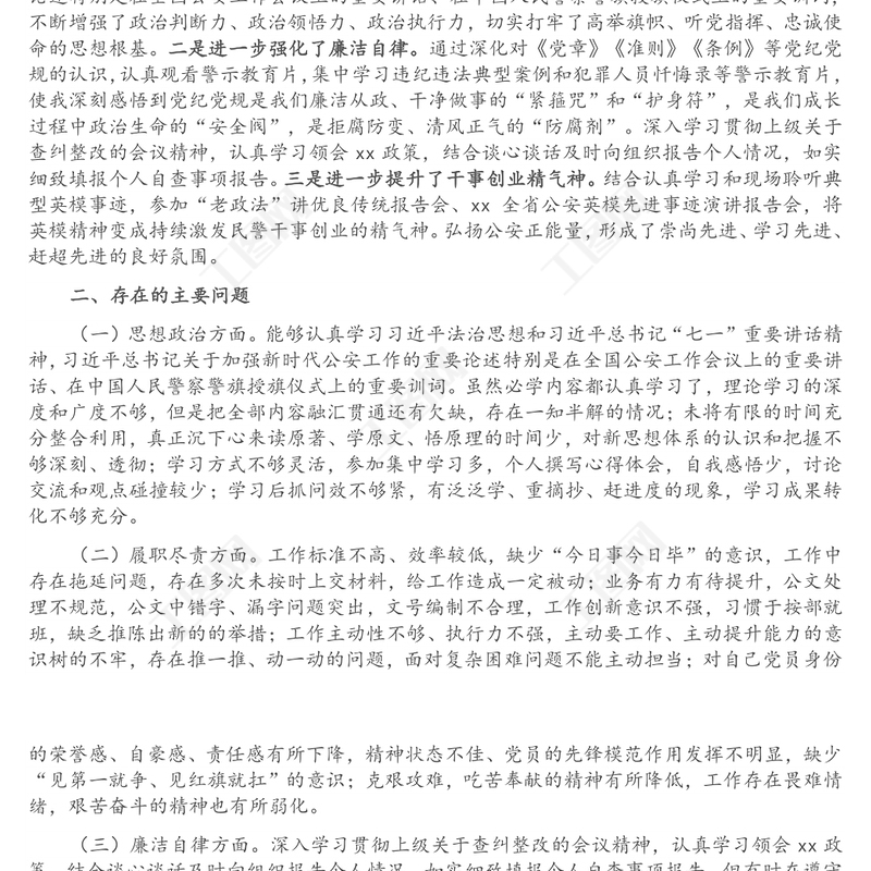 2021年政法隊(duì)伍教育整頓查糾整改環(huán)節(jié)自查自糾報(bào)告(民警個(gè)人)包含
