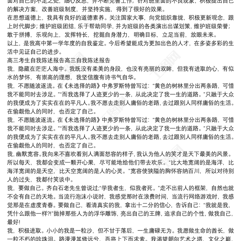 有關高中生綜合素質評價自我陳述報告參考模板包含