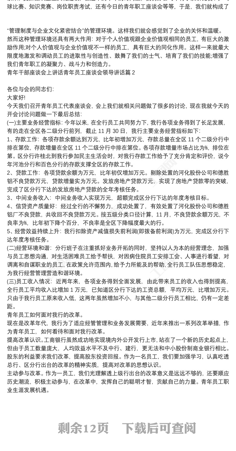 > 領(lǐng)導(dǎo)講話 > 青年干部座談會(huì)上講話青年員工座談會(huì)領(lǐng)導(dǎo)講話9篇.DOCX 【圖片、文字、動(dòng)畫均可編輯】