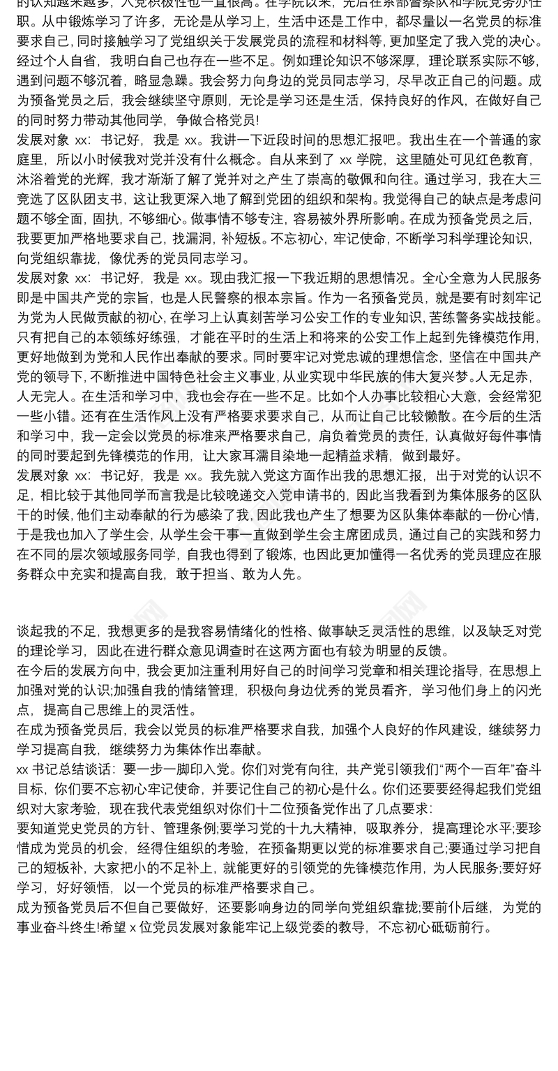 黨總支與黨員發(fā)展對(duì)象的談話記錄包含