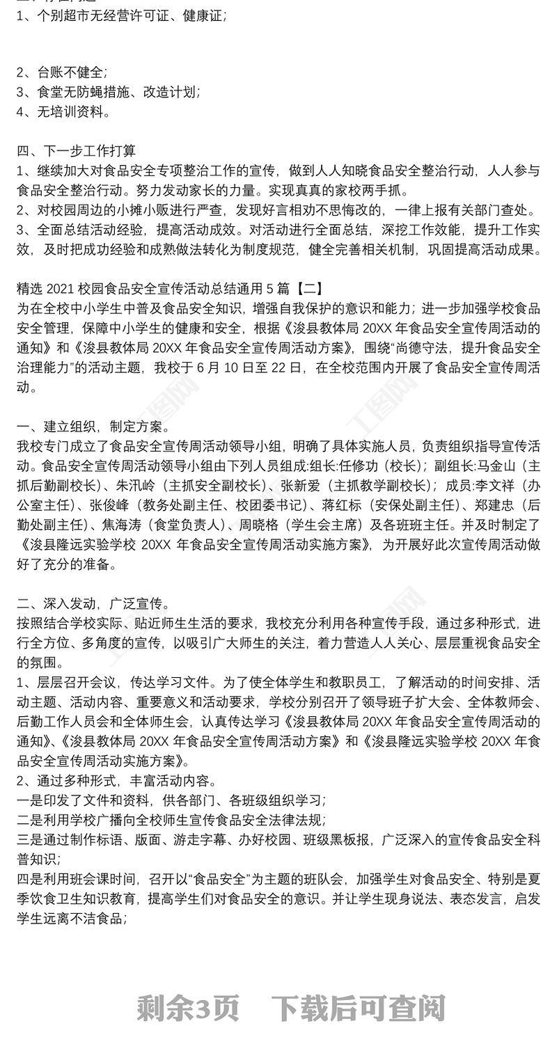 2021校園食品安全宣傳活動總結精選例文包含