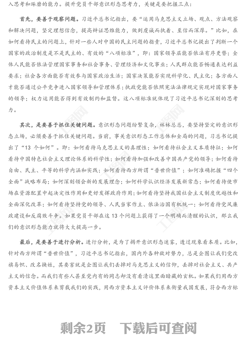 提升黨員干部意識形態能力專題黨課講稿包含