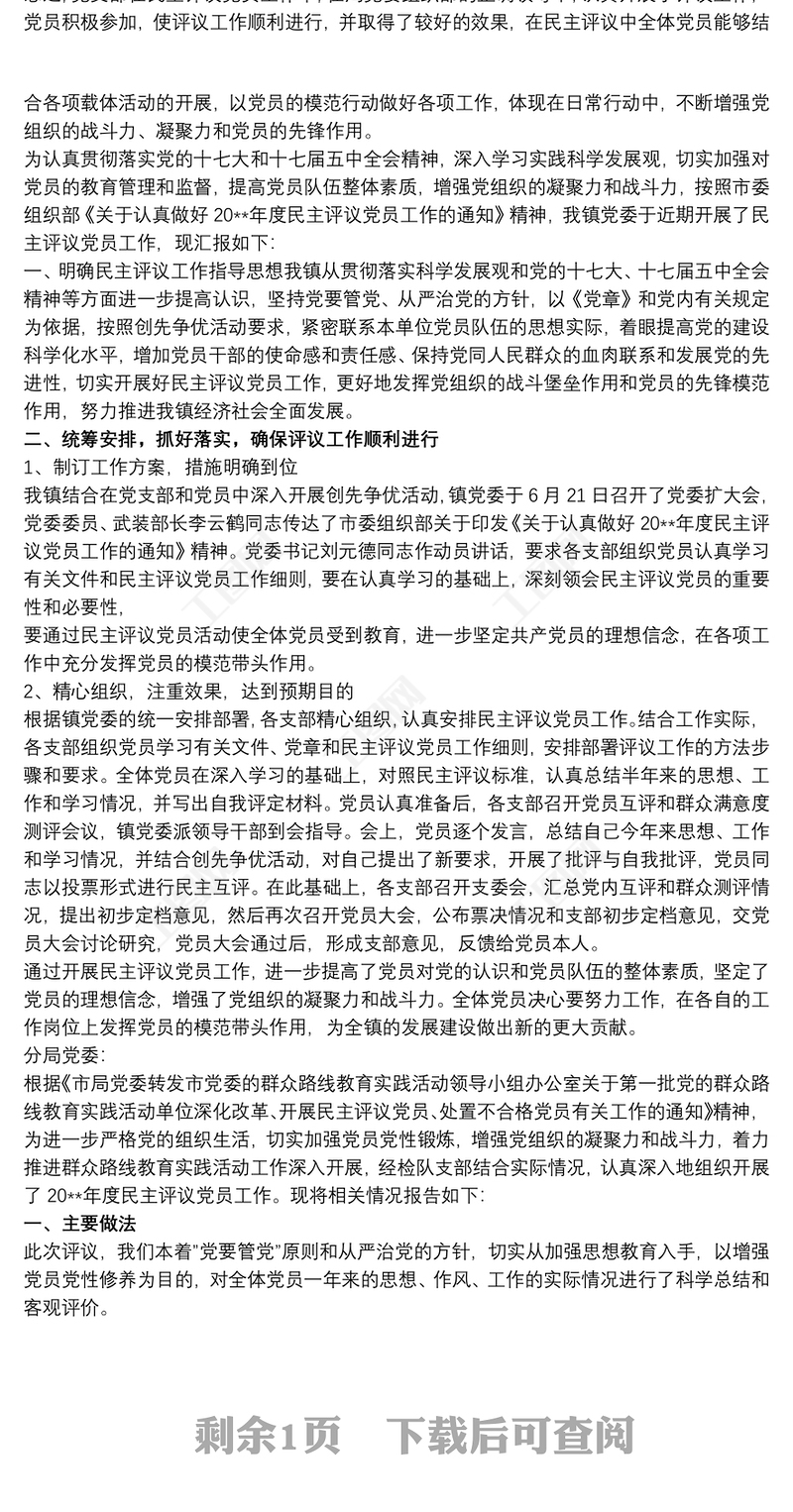 20xx年黨支部民主評議黨員的情況報告材料 Array