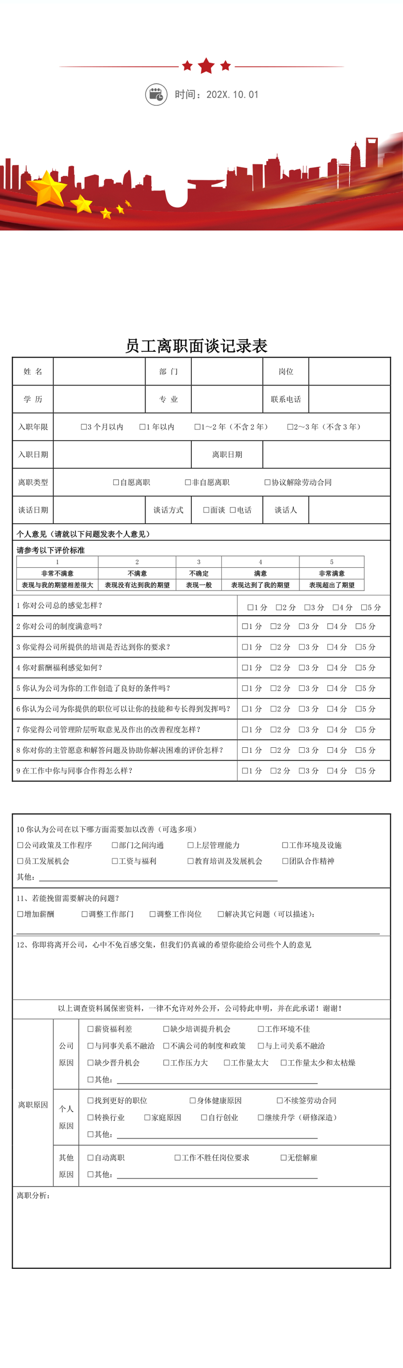 工圖網(wǎng)提供員工離職面談記錄表供會員免費下載。更多精彩黨課PPT素材,盡在工圖網(wǎng)。
