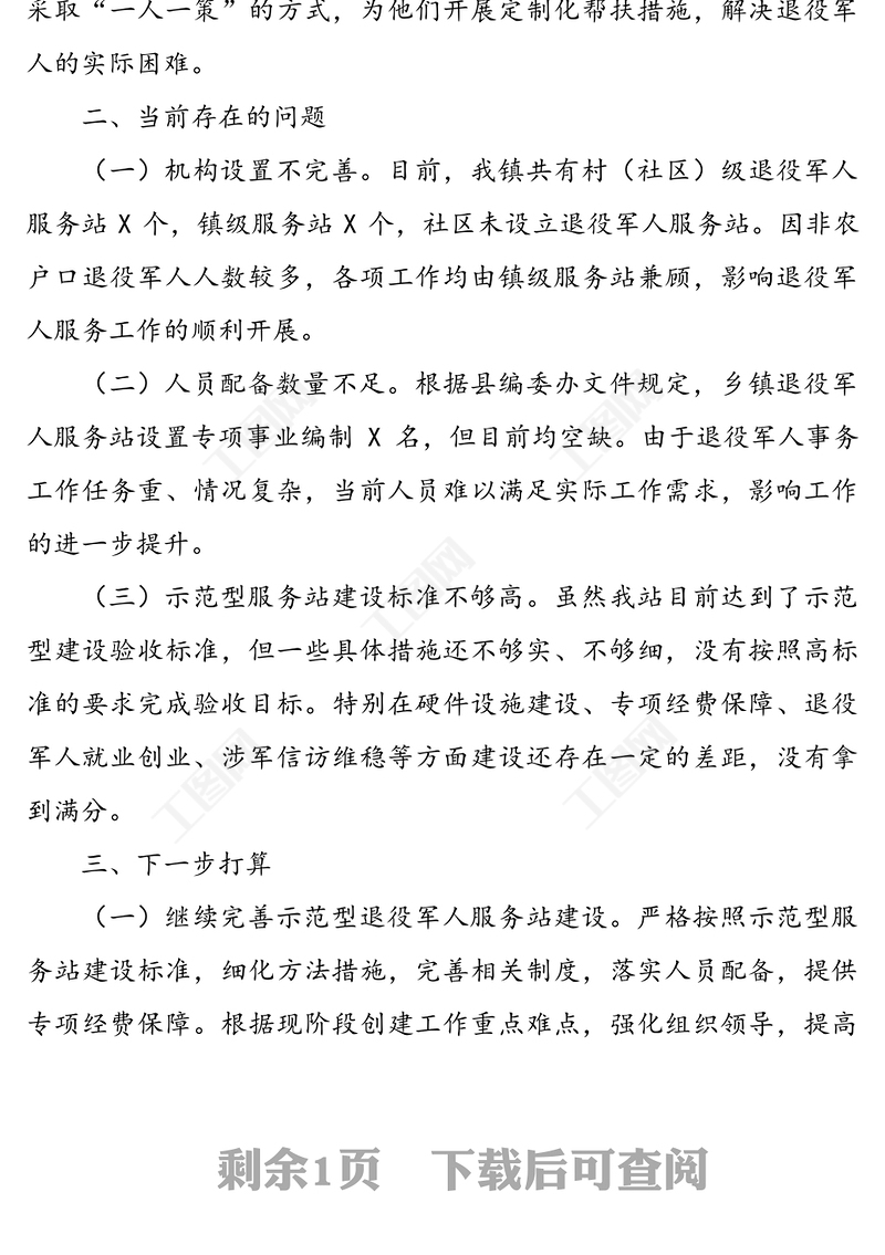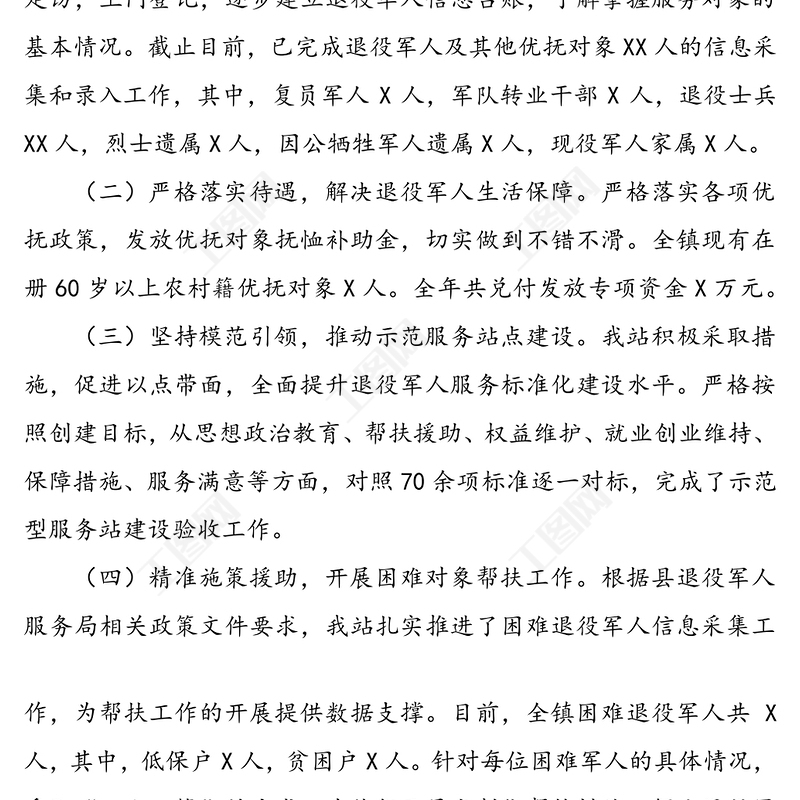 鄉鎮退役軍人服務站20xx年工作總結包含