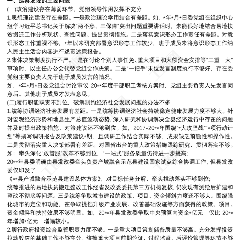 縣委巡察組關于“xx”問題巡察x黨組的巡察報告包含