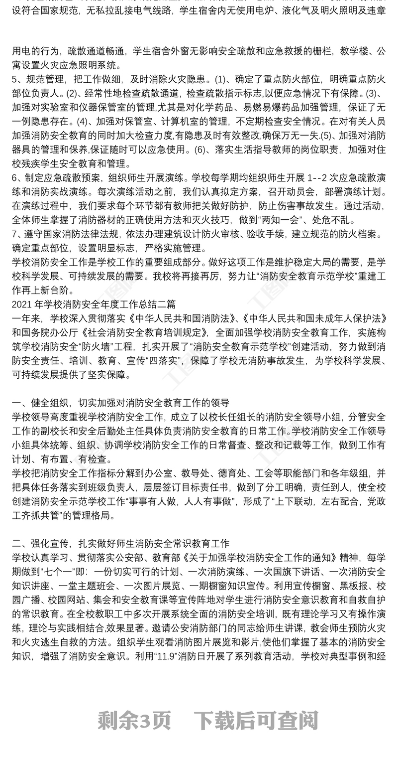 總結 > 2021年學校消防安全年度工作總結三篇.DOCX