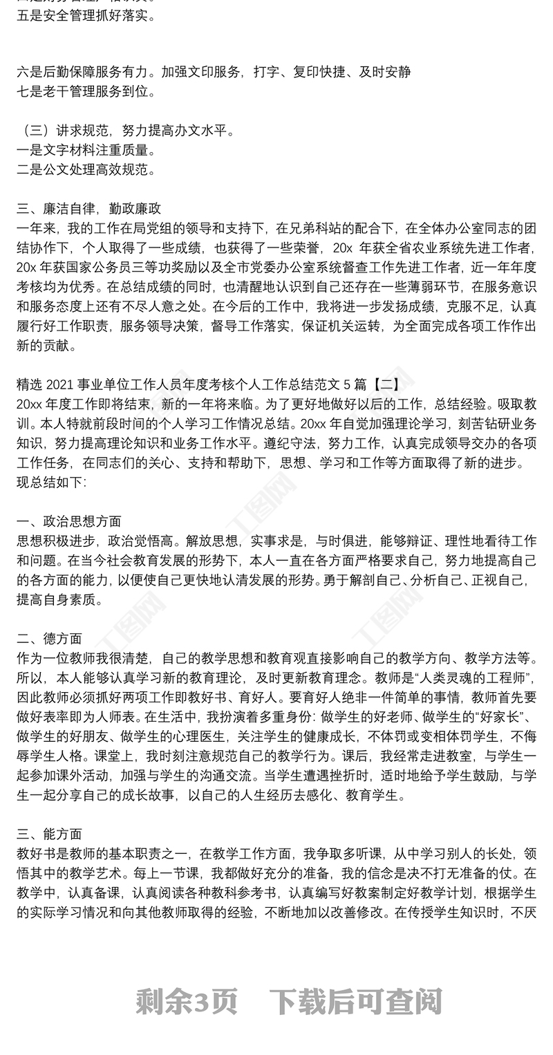 精選2021事業單位工作人員年度考核個人工作總結范文5篇 Array