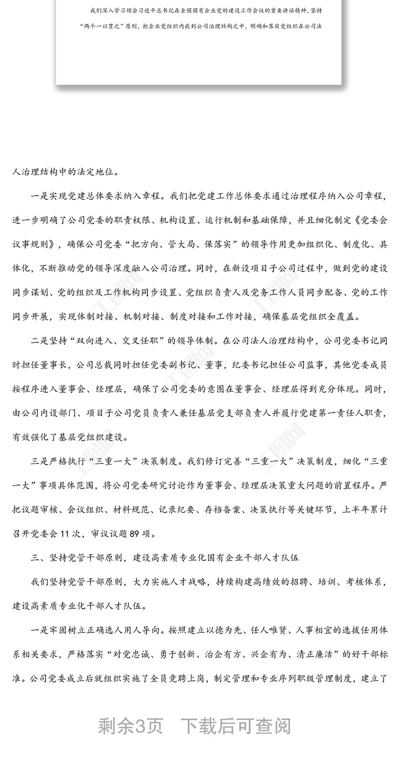 國有企業關于堅持黨的領導、加強黨的建設進展情況的報告,國有企業關于堅持黨的領導、加強黨的建設進展情況的報告 Array