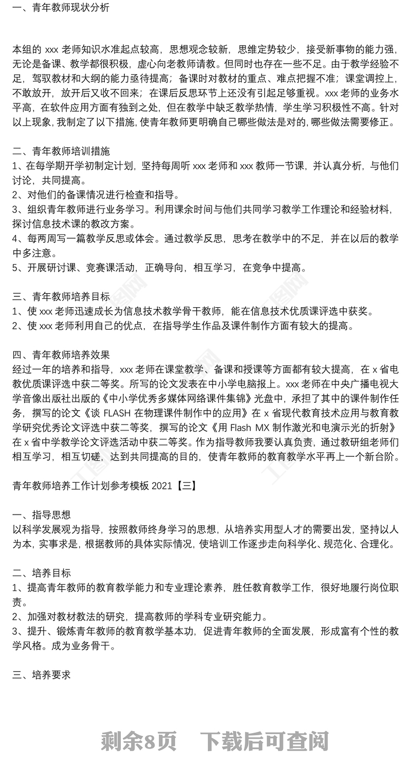 20xx年青年教師培養計劃包含