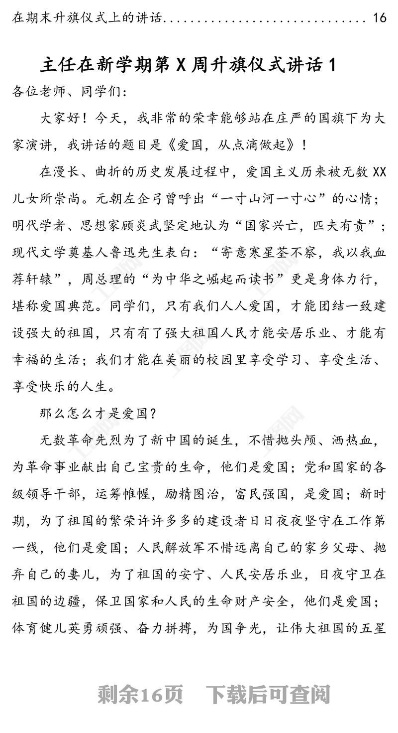 工圖網提供學校領導干部每周升旗儀式講話稿匯編(8篇)供會員免費下載。更多精彩黨課PPT素材,盡在工圖網。