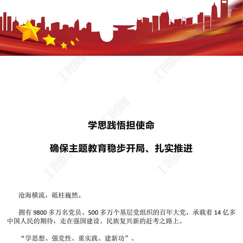 學思踐悟擔使命PPT紅色簡潔確保主題教育穩步開局扎實推進黨課課件 Array