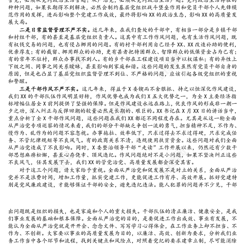鎮村干部集體廉政談話會上講話稿例文包含