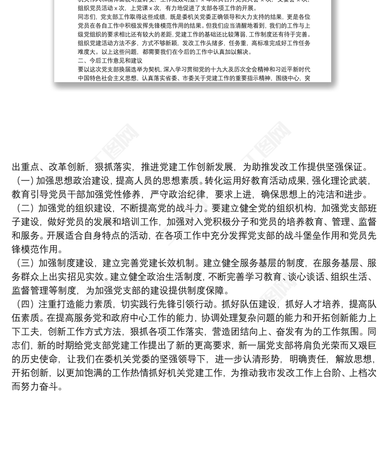 2022年機(jī)關(guān)黨支部換屆工作報(bào)告2022黨支部年度意識(shí)形態(tài)工作報(bào)告2021年局機(jī)關(guān)黨支部換屆工作報(bào)告2021年團(tuán)委換屆工作報(bào)告主題2021-2022黨支部三年工作報(bào)告2023學(xué)校黨支部換屆工作報(bào)告2023機(jī)關(guān)黨支部換屆工作報(bào)告2023糧庫(kù)黨支部換屆工作報(bào)告2023企業(yè)黨支部換屆工作報(bào)告2023基層黨支部換屆工作報(bào)告2023縣醫(yī)院黨支部換屆工作報(bào)告2023發(fā)改局黨支部換屆工作報(bào)告