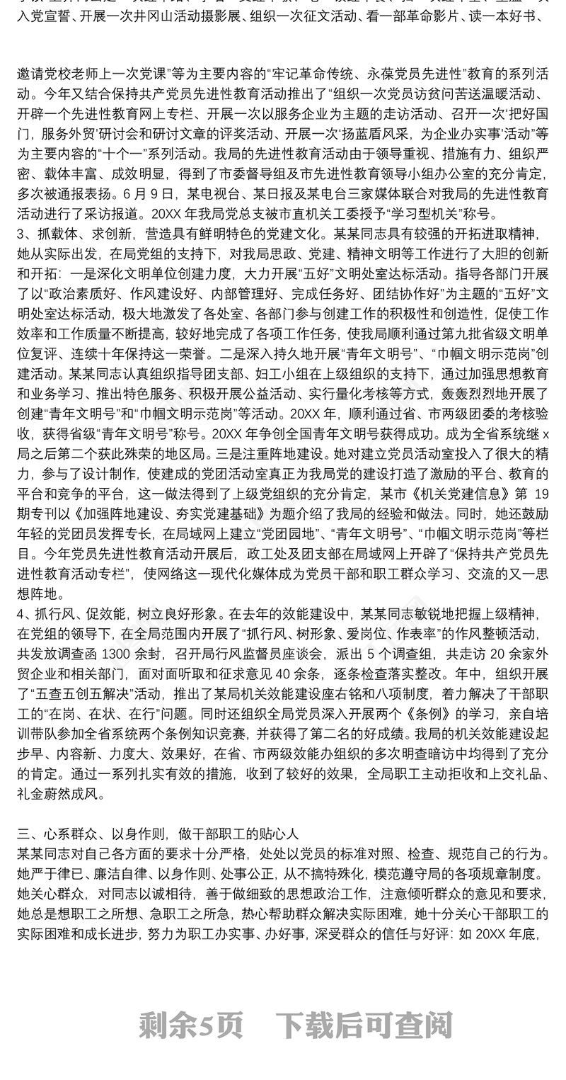 2021關于黨的先鋒模范個人先進事跡材料范文包含