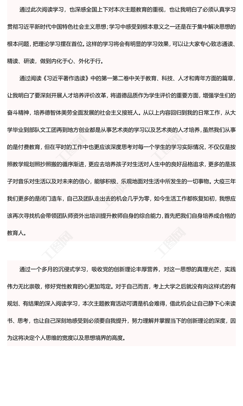 工圖網提供2023【主題教育】學習心得:感悟思想 汲取力量 篤定前行供會員免費下載。更多精彩黨課PPT素材,盡在工圖網。