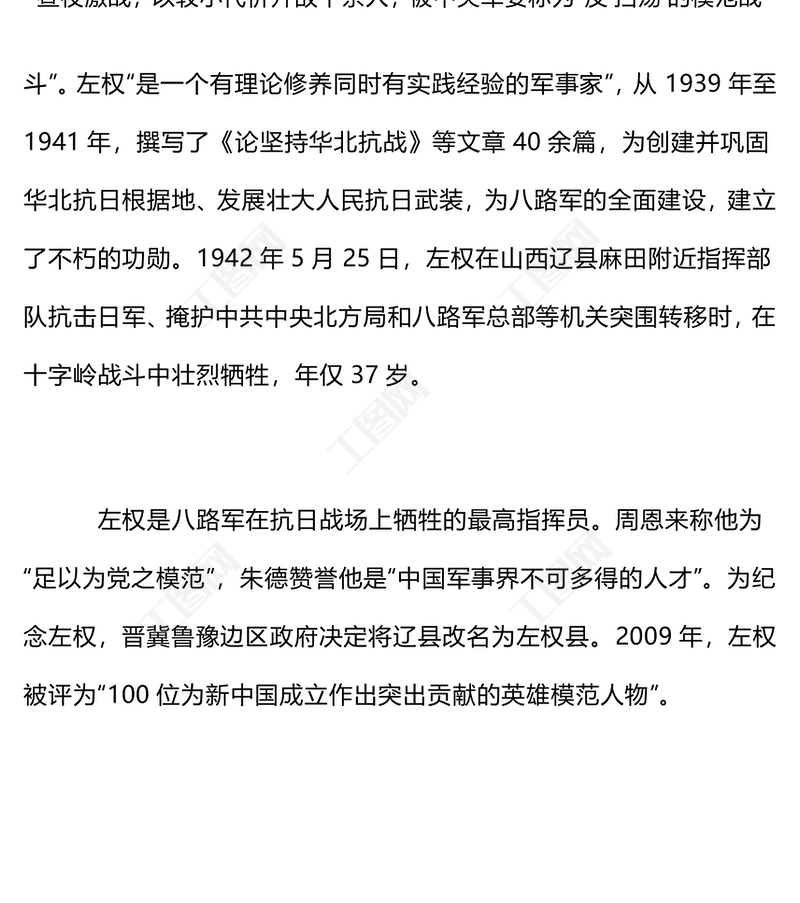 > 抗日民族英雄左權PPT紅色莊嚴銘記歷史緬懷先烈課件下載(講稿).DOCX