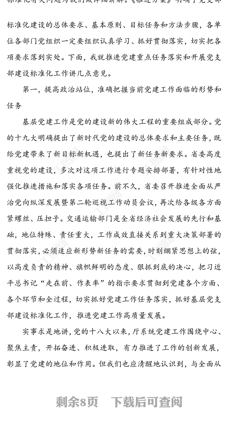 在廳系統(tǒng)黨建工作重點任務推進會暨黨支部建設標準化工作部署動員會上的講話,黨建工作重點任務推進會,經(jīng)驗交流 Array