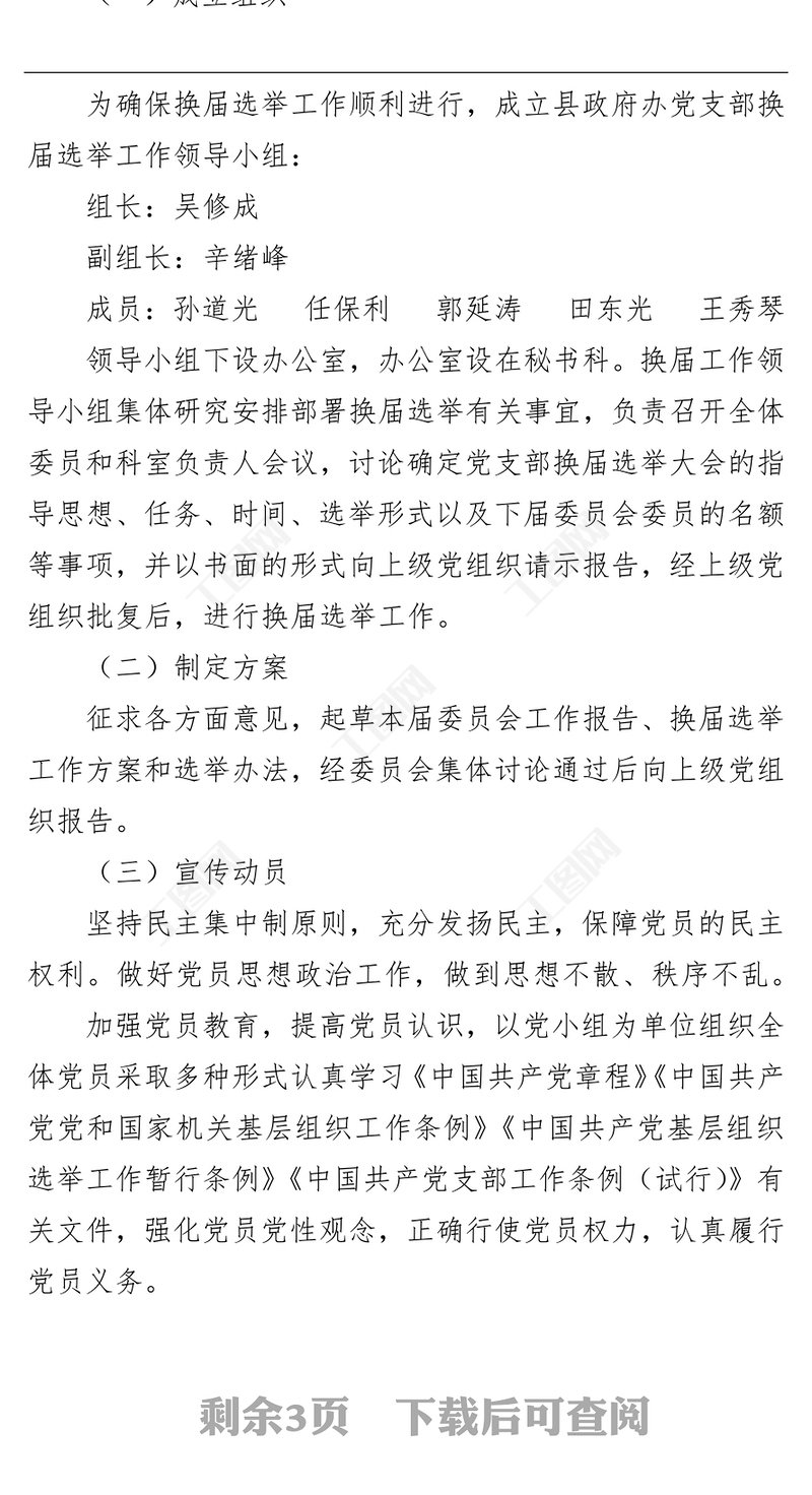 工圖網提供x縣人民政府辦公室黨支部換屆選舉工作方案供會員免費下載。更多精彩黨課PPT素材,盡在工圖網。