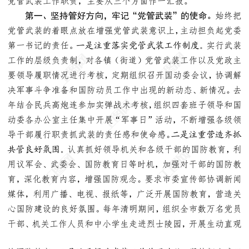 黨管武裝工作述職報(bào)告黨建工作述職報(bào)告包含