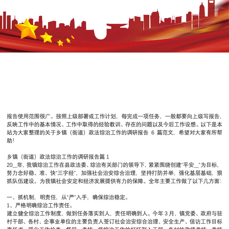 工圖網(wǎng)提供鄉(xiāng)鎮(zhèn)(街道)政法綜治工作的調(diào)研報(bào)告6篇供會(huì)員免費(fèi)下載。更多精彩黨課PPT素材,盡在工圖網(wǎng)。