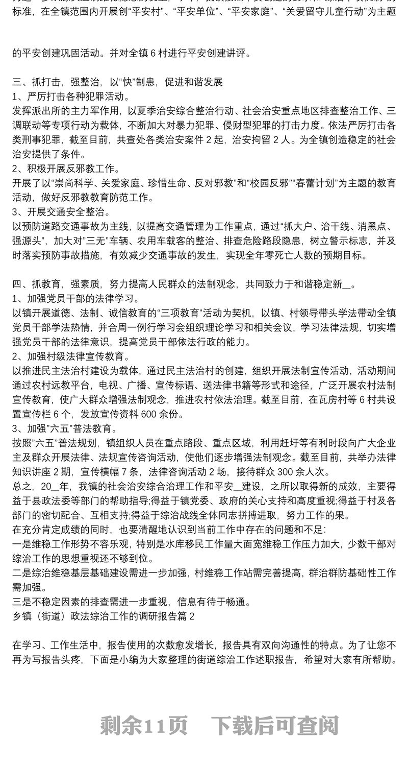 鄉(xiāng)鎮(zhèn)(街道)政法綜治工作的調(diào)研報(bào)告6篇 Array