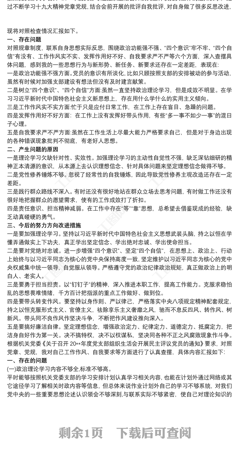 工圖網提供2020黨員組織生活會和民主評議個人對照檢查材料供會員免費下載。更多精彩黨課PPT素材,盡在工圖網。