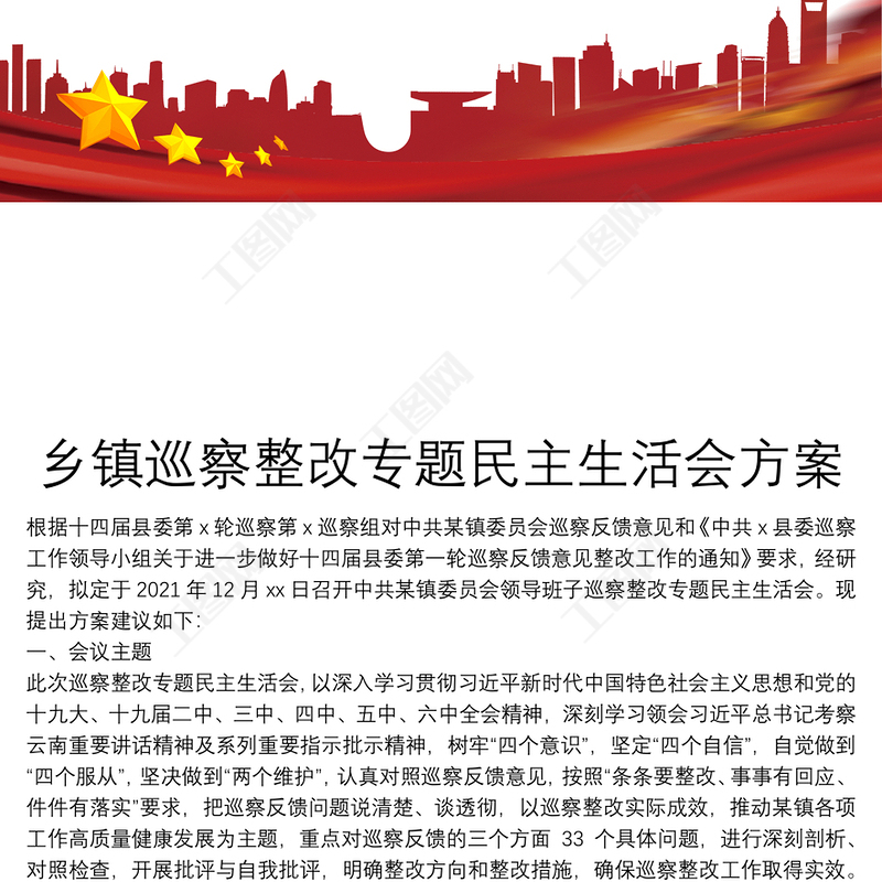 工圖網提供鄉鎮巡察整改專題民主生活會方案供會員免費下載。更多精彩黨課PPT素材,盡在工圖網。