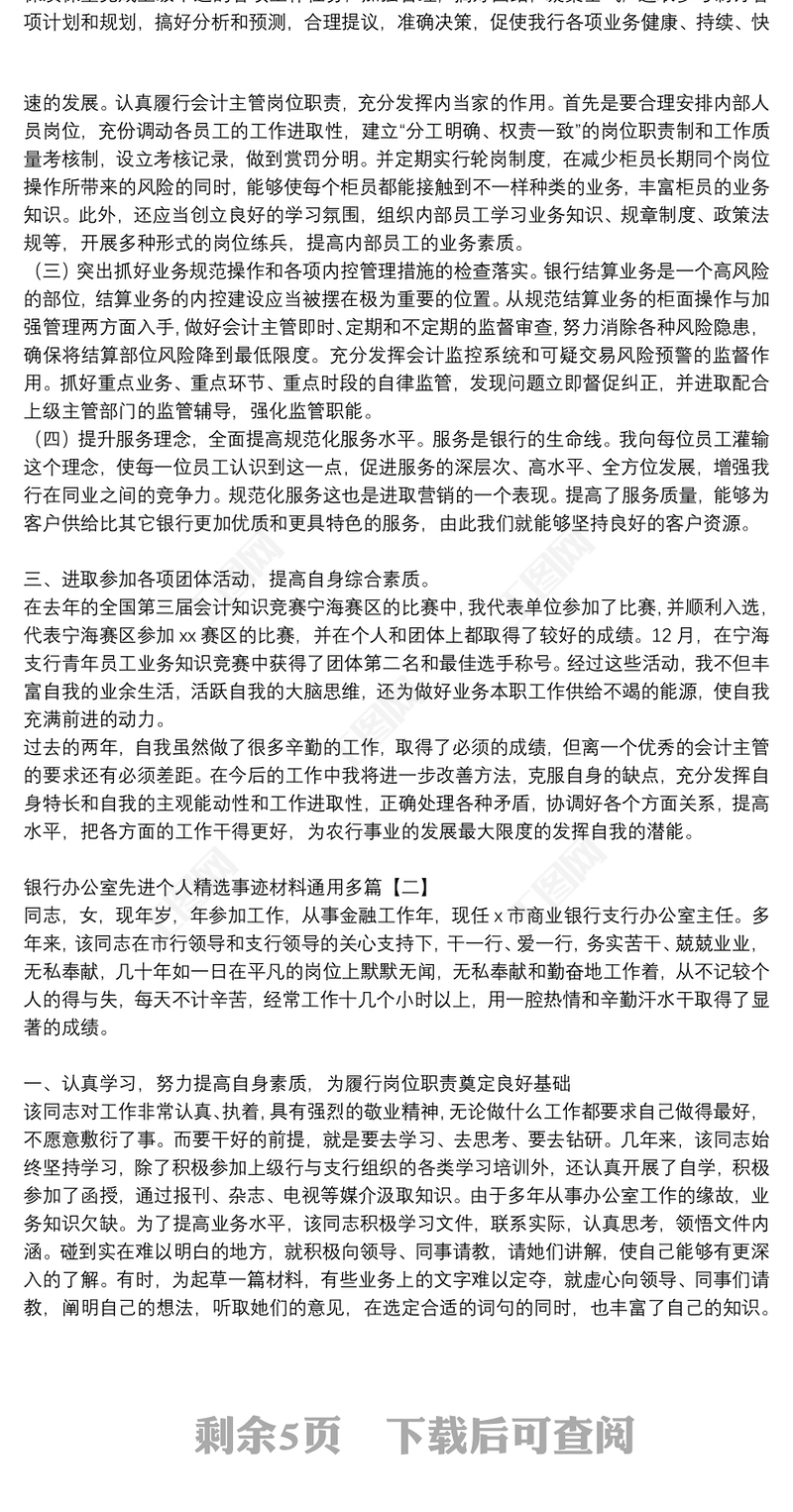 工圖網提供銀行辦公室先進個人精選事跡材料通用多篇供會員免費下載。更多精彩黨課PPT素材,盡在工圖網。