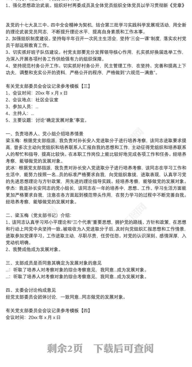 工圖網提供有關黨支部委員會會議記錄參考模板供會員免費下載。更多精彩黨課PPT素材,盡在工圖網。