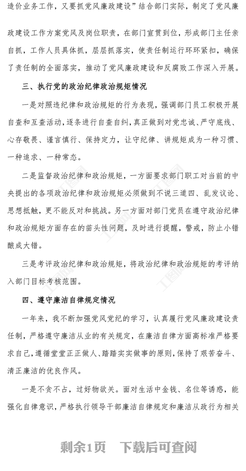 工圖網提供2021年公司黨員領導干部遵守黨風廉政建設和廉潔從業個人總結供會員免費下載。更多精彩黨課PPT素材,盡在工圖網。
