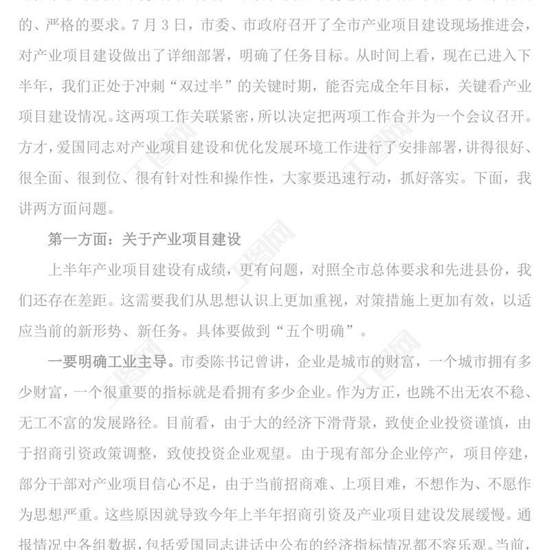 領導講話 > 縣委書記在全縣產業項目建設暨優化發展環境工作會議上的講話.DOCX