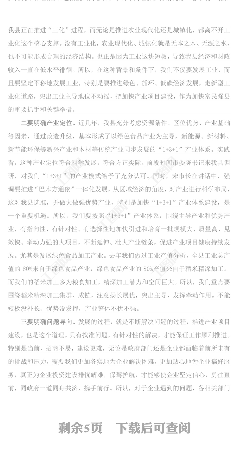 在全縣產業項目建設暨開放招商工作會議上的講話招商引資包含
